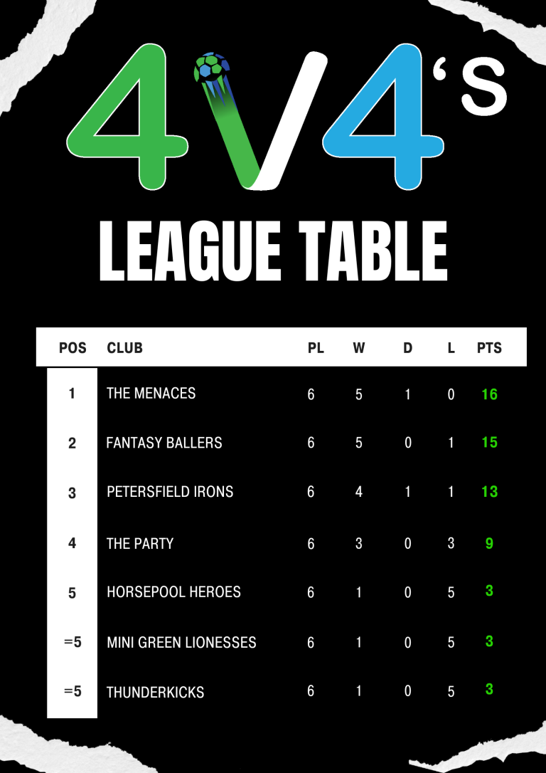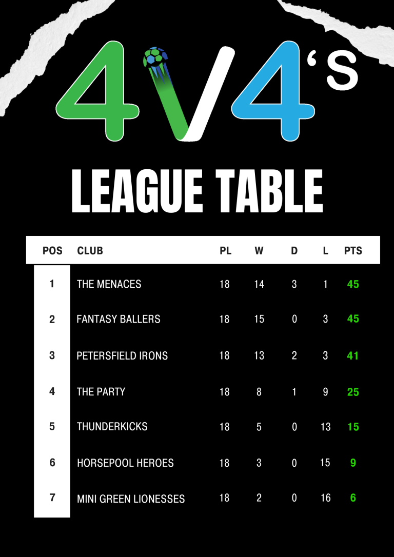 4v4’s – Updated League Table