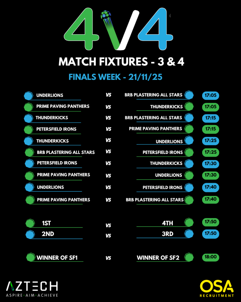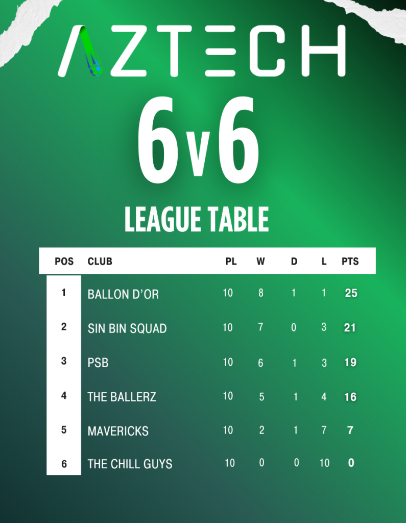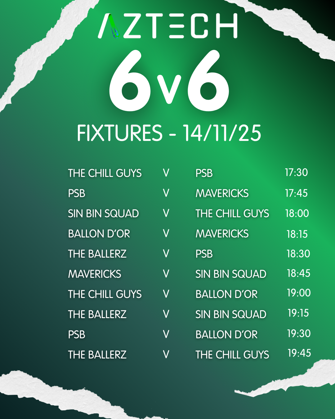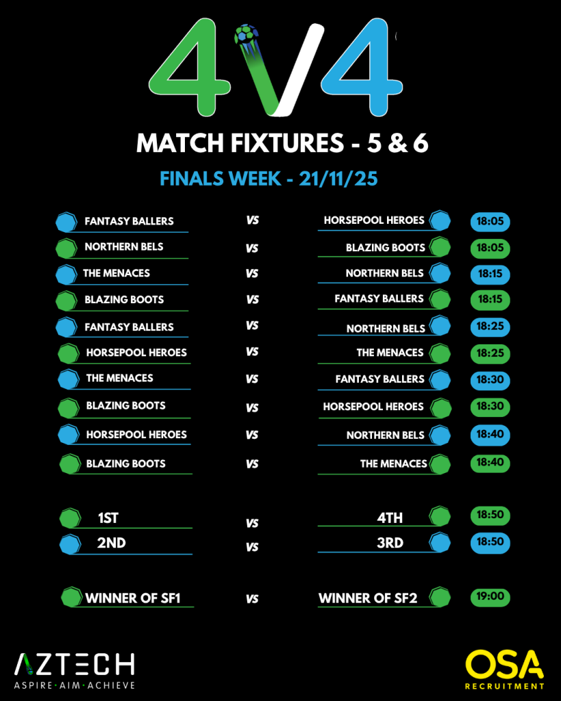 Upcoming fixtures for 6v6's